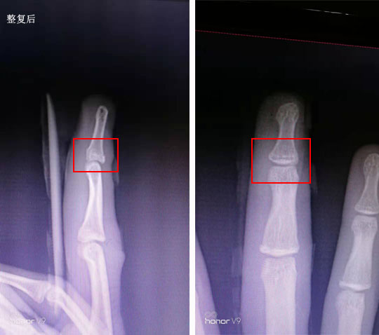 指伸肌腱止点撕脱性骨折,手法复位,夹板固定。